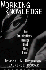 Working Knowledge: How Organizations Manage What They Know by Thomas H. Davenport and Laurence Prusak (Harvard Business School Press, 256 pages, $29.95) strives to guide managers in recognizing the knowledge that is pivotal to the success of the enterprise and utilizing this knowledge to maximum advantage. "The core message of this book is that the only sustainable advantage a firm has comes from what it collectively knows, how efficiently it uses what it knows, and how readily it acquires and uses new knowledge."